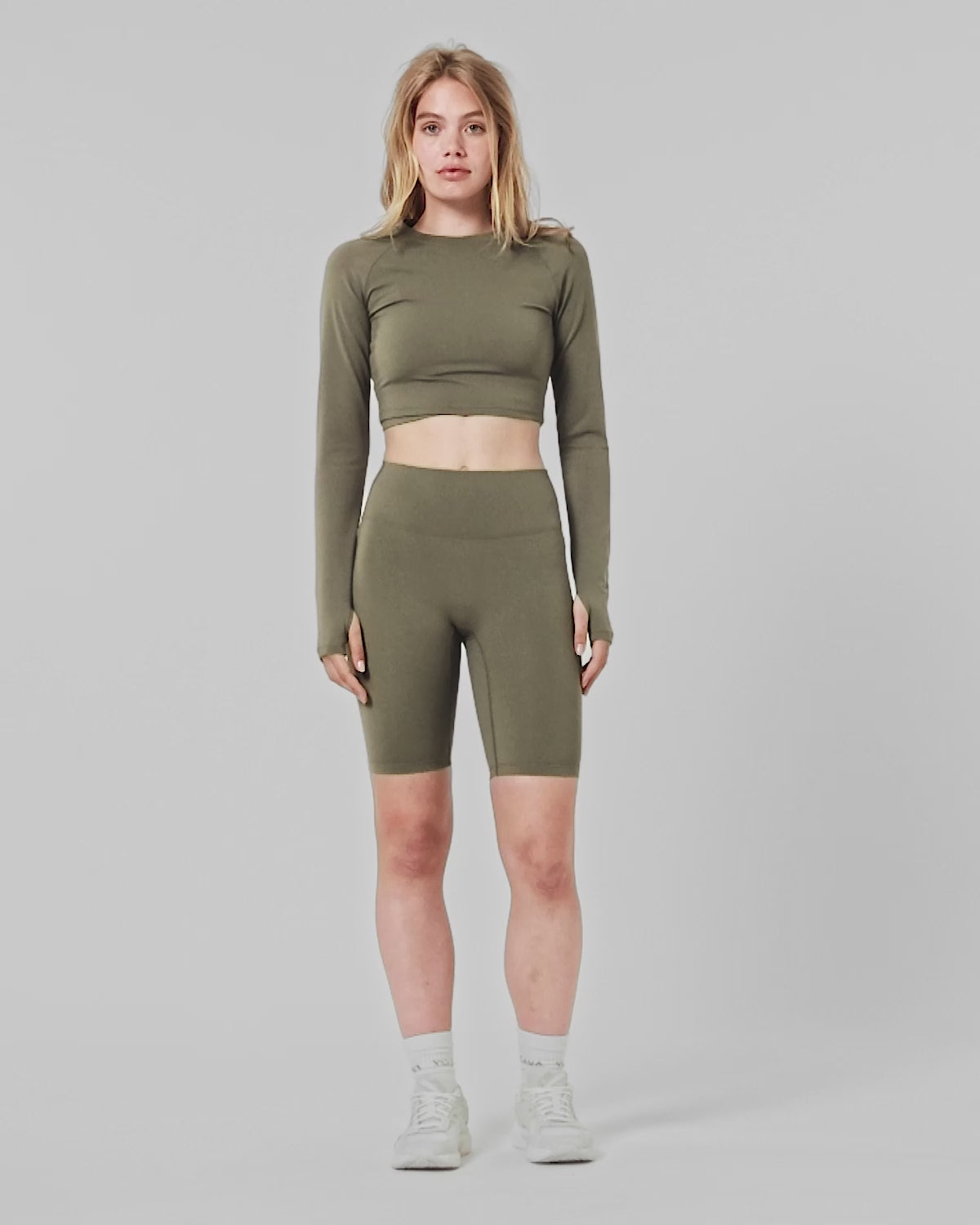 Wir präsentieren das YO-GAYA Long Sleeve Crop Top! Unsere neue und verbesserte Passform und der Stoff fallen größengetreu aus und bieten eine komprimierende, aktive Passform, die glättet und formt. Das Top besteht aus 70 % Nylon und 30 % Elasthan und ist somit leicht und bequem für den ganzen Tag. Der 4-Wege-Stretchstoff sorgt dafür, dass sich das Top beim Training mit Ihnen bewegt. Der verkürzte Schnitt passt perfekt zu hoch taillierten Leggings oder Shorts.