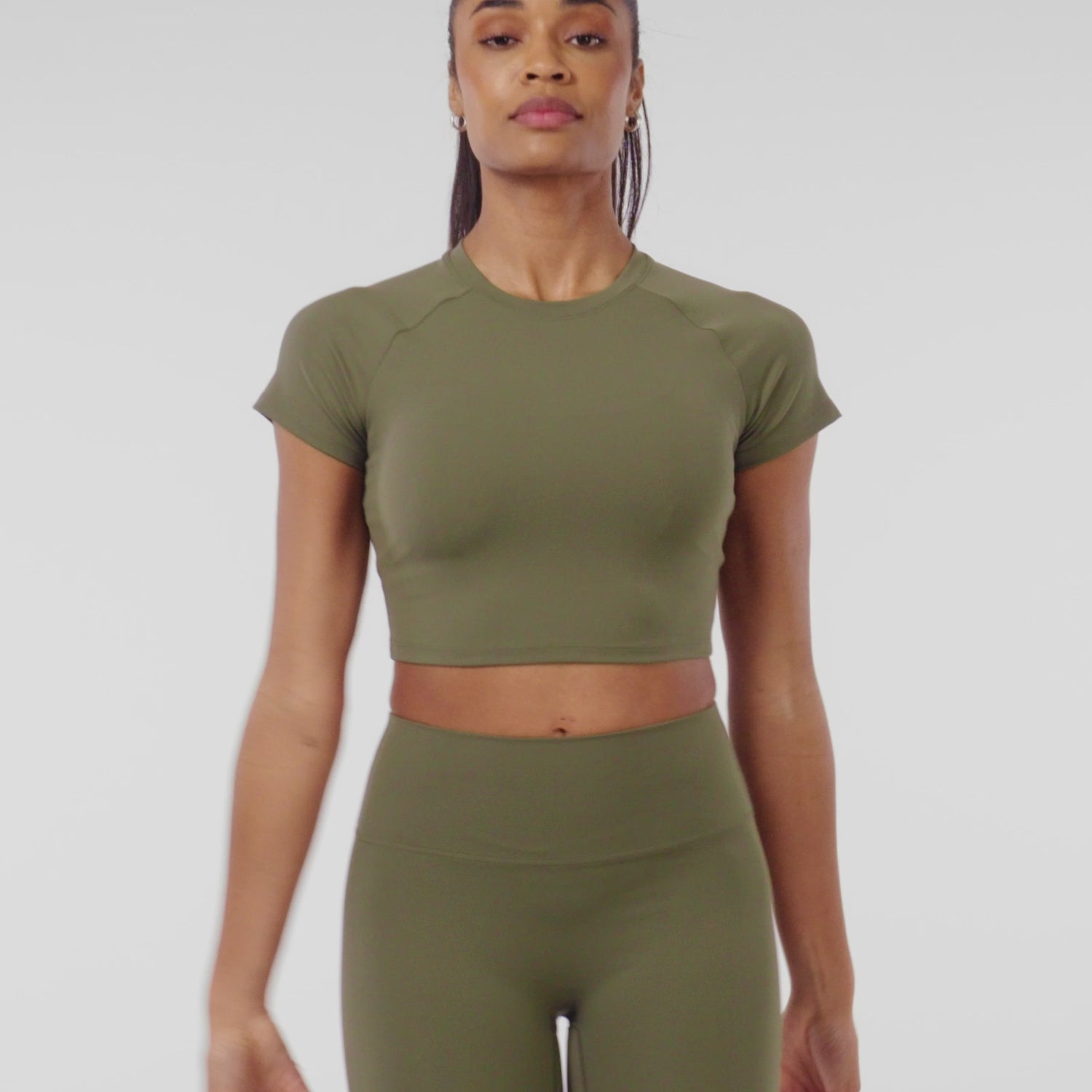 Push your performance with the YO-GAYA Short Sleeve Crop Top — a slim-fit essential designed for movement and support. With a flattering crewneck, cap sleeves, and sculpted silhouette, this top delivers a clean, confident look for any workout.