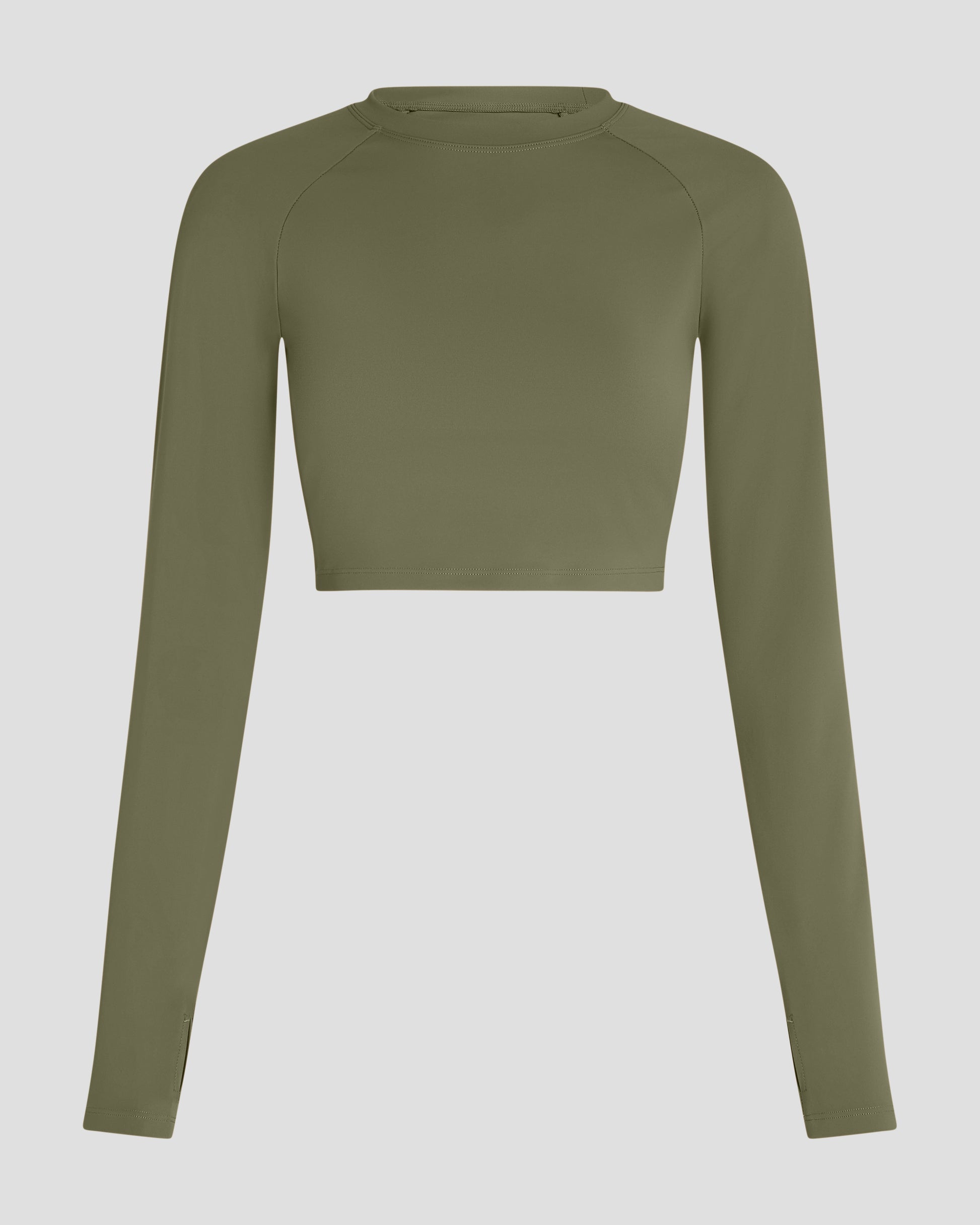 Long Sleeve Crop Top - Olive Green